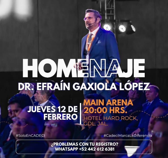 En el marco de CADECI 2026, el jueves 12 de febrero a las 20:00 hrs. en MAIN ARENA, tendremos “Evento Homenaje” a nuestro Director Fundador de CADECI quién fué un GRAN LÍDER en la cardiología de México y Latinoaméria. ¡No faltes!